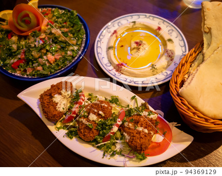 【日本】アラブ料理レストランで出されたパン、ホムス、ファラーフェル、タッブーレサラダ