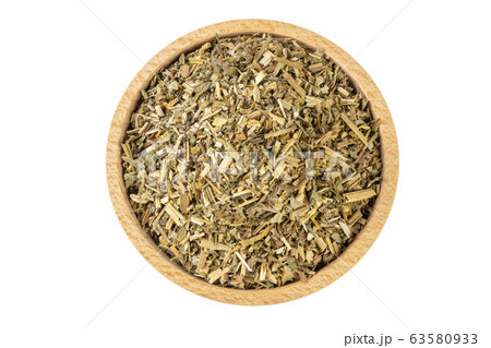 Bistorta officinalis known as bistort, common bistort, European bistort or meadow bistort in wooden scoop isolated on white background.