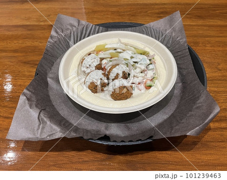中東や地中海地域の伝統的な家庭料理であるフムス・ファラフェル
