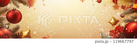 クリクリスマスオースマスオーナメントの背景イラスト ( ベクター バナー 文字なし 1:3 )