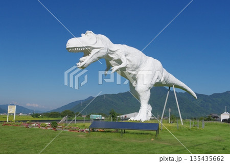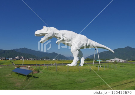 福井県勝山市 青空にたつホワイト恐竜オブジェ