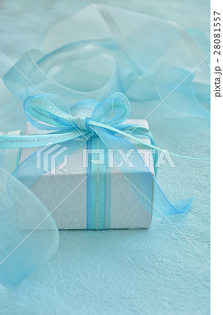 ピュアで爽やかで上品な色サックスブルーのリボンの贈り物