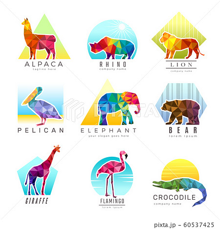 Animals logo. Zoo low poly triangular geometric symbols fo different animals origami colored business identity vector