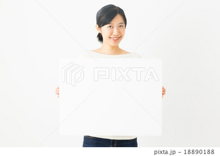 화이트보드 들고 있는 20대 비즈니스 여성,플래카드,