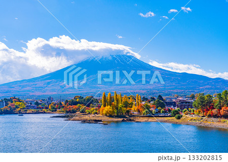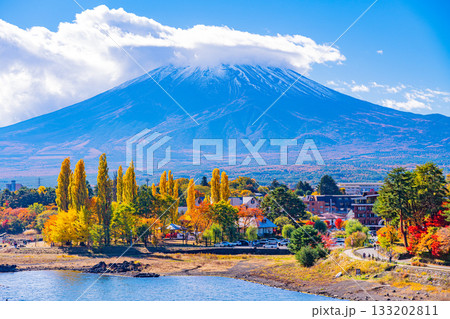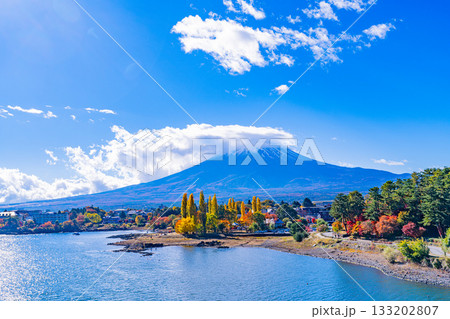(山梨県)河口湖畔の紅葉と富士山
