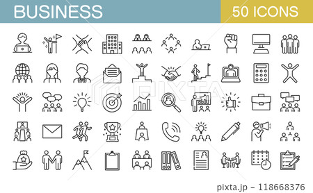 ビジネスやチームワークに関するアイコンセット カラー