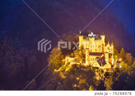 Hohenschwangau Castle at night in the Bavarian Alps of Germany