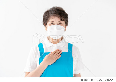 エプロンの女性 家事代行 ヘルパー マスク