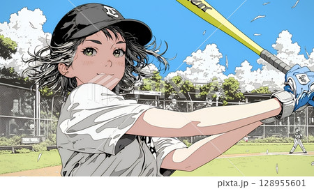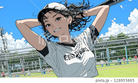 野球をしている若い女性