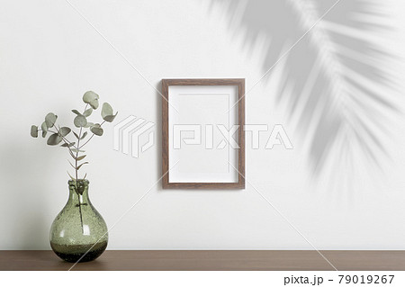 Mock up empty white frame background. Empty frame for a photo or painting in a light Scandinavian minimalist interior on a white clean wall.