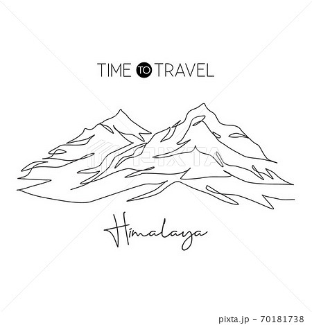 Single continuous line drawing Himalayan Mount Everest landmark. Beautiful famous place in Nepal. World travel tour home decor wall art poster concept. Modern one line draw design vector illustration