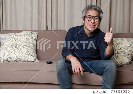 Asian man reads good news on smartphone says wow shows thumbs up and shares positive update in chat