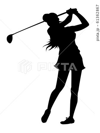 ウィメンズゴルフのシルエット 女子ゴルファー レディースファッション ポーズ クラブを手に持つ女性