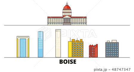 United States, Boise flat landmarks vector illustration. United States, Boise line city with famous