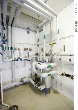 white plastic pipes in boiler room