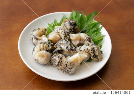 お皿に盛りつけたボイルつぶ貝(灯台つぶ)