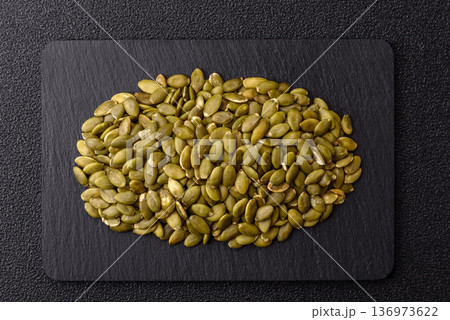 Shelled pumpkin seed kernels, salted, roasted, or raw, are a healthy ingredient. Pumpkin seeds