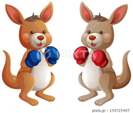 Cartoon Kangaroos Wearing Boxing Gloves Facing Each Other
