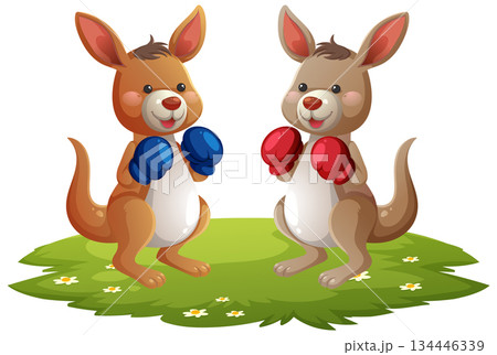 Cartoon Kangaroos Wearing Boxing Gloves on Grass Patch