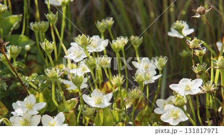 コウメバチソウ:高山植物の白い花の群落/長野県白馬村八方尾根・9月