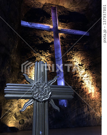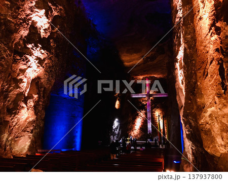 南米コロンビアの首都ボゴタから程近い街にある岩塩採掘場跡地に作られた青く光る塩の教会