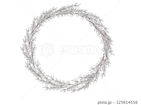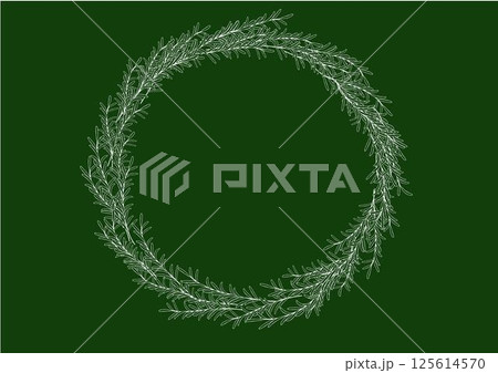 ナチュラルなオリーブとローズマリーの手描き風の線画 スワッグ