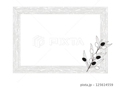 ナチュラルなオリーブの手描き風の線画 額縁と一枝のオリーブのフレーム