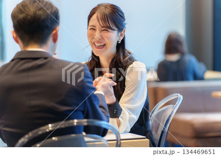 爆笑するビジネスウーマンとビジネスマン
