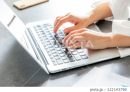 テレワークをする女性の手元