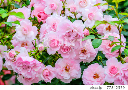 5月に美しく咲いたピンク色のバラの花「ボニカ’82」