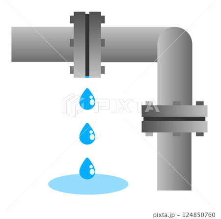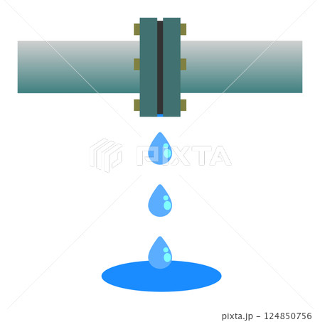 配管や水道管の不良で水漏れをするフランジ部のイラスト