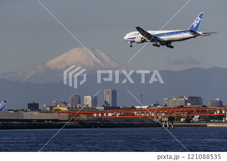 空港 飛行機 羽田空港 離陸 午後 夕暮れ 夜 航空会社 エンジン ブレーキ 第1ターミナル 富士山