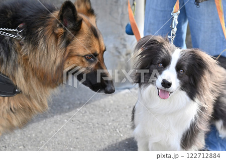 犬同士の挨拶 シェパード・ボーダーコリー 散歩