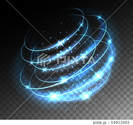 Vector illustration depicting magical blue wind effect with a dynamic vortex of luminous air particles