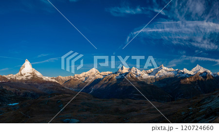 ゴルナーグラード鉄道 ローテンボーデンからの朝陽に染まるマッターホルン スイス ツェルマット