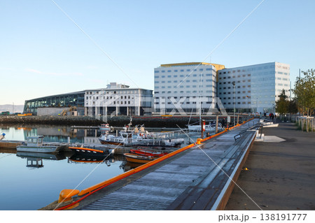 天王洲アイルの桟橋に停泊中のクルーザー(東京都品川区)