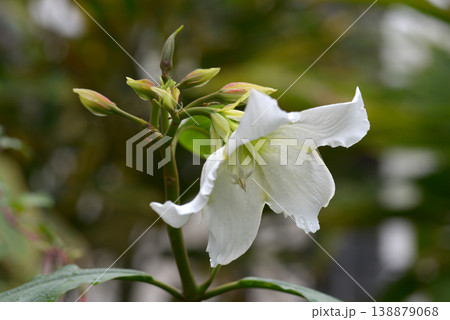 ボーモンティア・ムルティフロラの花の蕾と雨雫