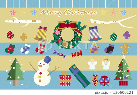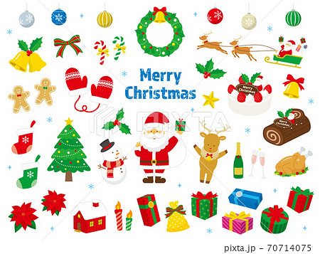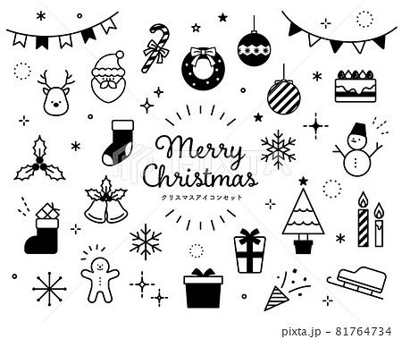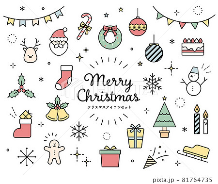 クリスマスのアイコンのセット かわいい サンタクロース トナカイ クリスマスツリー プレゼント