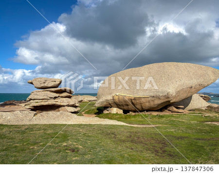 Granite head rock near Mean Ruz on Tregastel coast, Brittany, France