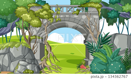 Pile of gray stones and grass illustration, depicting a natural rock formation scenery.