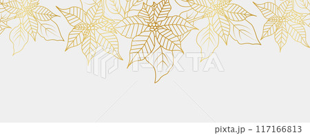 Golden Poinsettia flowers line art isolated on white background. Luxury floral design elements for invitation, wedding, wallpaper, print template, vector illustration