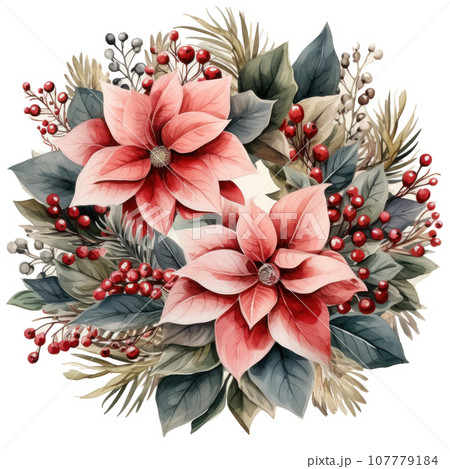 watercolor poinsettia christmas wreath flower isolated