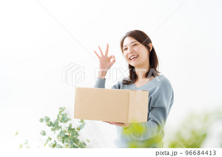 段ボール箱を持つ女性
