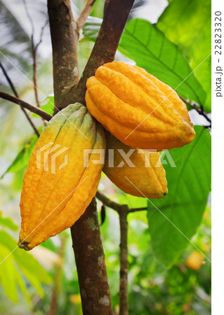 Cocoa tree with pods