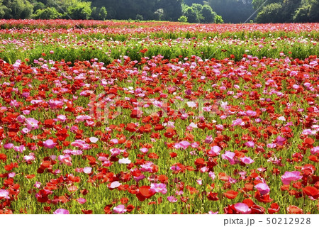 埼玉県鴻巣市滝馬室荒川河川敷ポピーハッピースクエア 満開の真っ赤なシャーレーポピー畑
