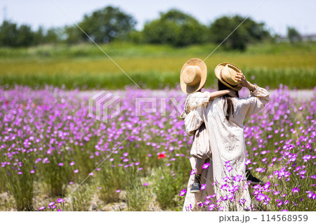 埼玉県鴻巣市ポピー・ハッピースクエア 夕焼けのムギナデシコ畑