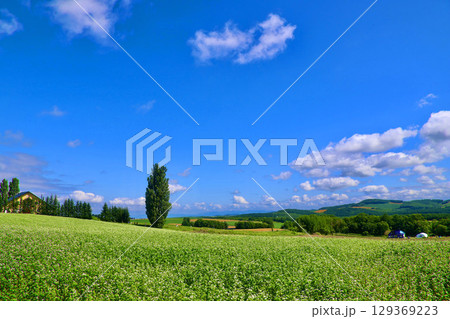 北海道美瑛_ケンとメリーの木と蕎麦畑の風景