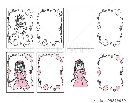 シンプルなタッチ ファンシーでかわいい枠のイラストレーションセット