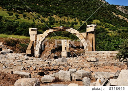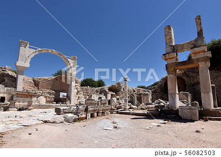 トルコ エフェソスの古代都市遺跡にあるドミティアヌス神殿とポリオの泉