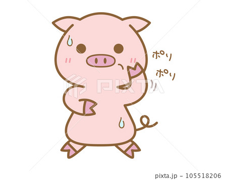 ポリポリとかきながら動揺するぶた